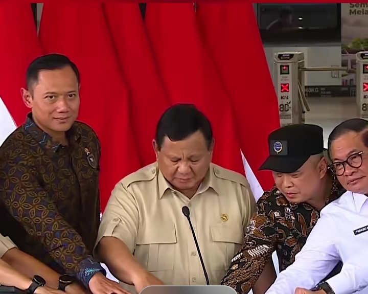 Sundanesia.Com – Presiden Prabowo meresmikan Stasiun Tahan Abang Baru, Sebelum peresmian Presiden mencoba menaiki Komuter Line dari Stasiun Manggarai ke Tanah Abang. Selasa (4/10/2025).