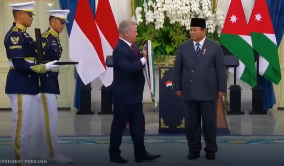Sundanesia.Com – Raja Kerajaan Yordania Hasyimiah, Abdullah II ibn Al Hussein, memberikan penghargaan tertinggi The Bejeweled Grand Cordon of Al-Nahda (Order of The Renaissance) kepada Presiden Prabowo Subianto.